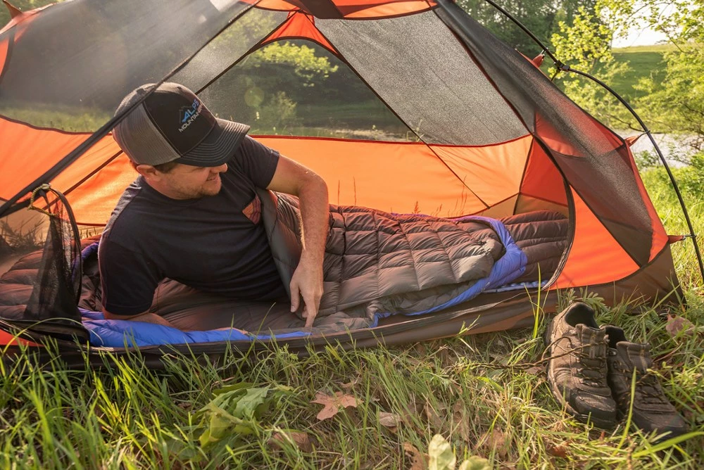 With a zipperless, hybrid design using both down and synthetic fill, ALPS Mountaineering Fusion 40 sleeping bag’s 600-fill-power down top and TechLoft Micro synthetic-fill bottom offer smart warmth.
