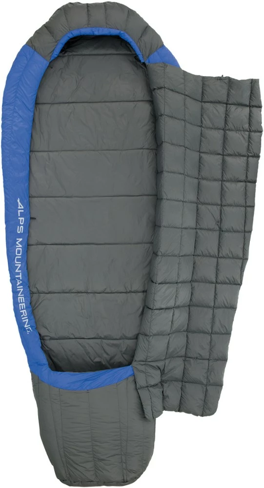 - A lightweight, mild-weather bag for camping and backpacking, the quilted down top is unattached on 3 sides, allowing it to fold open for freedom or tuck in for added warmth