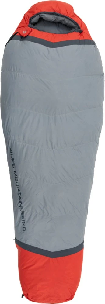 Delivering compressible warmth for 3-season use, this ALPS Mountaineering Zenith 30 sleeping bag is constructed with a ripstop shell, soft polyester liner and 600-fill-power water-resistant down.