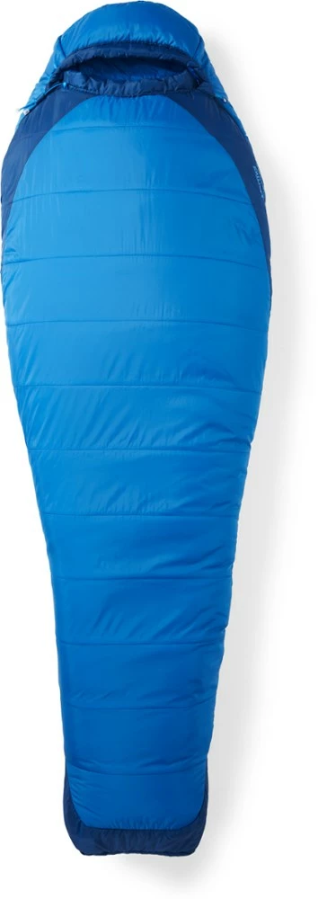 The Marmot Trestles Elite Eco 20 sleeping bag offers warmth and comfort for backpacking in 3 seasons, and 100% recycled materials for sustainability without sacrificing performance or durability.