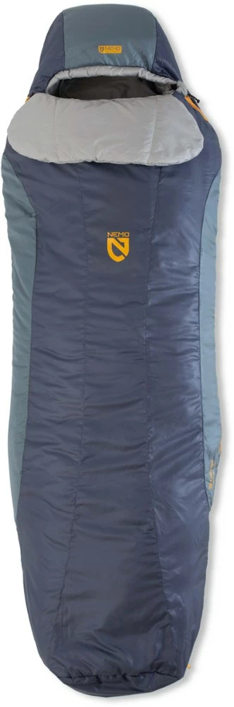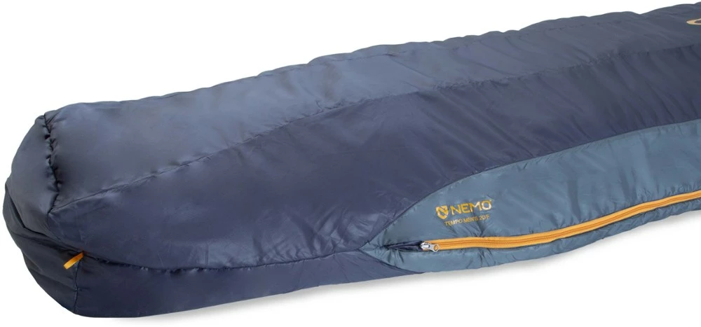 Blending roomy comfort with the NEMO space-saving Spoon™ shape, the men’s NEMO Tempo 20 synthetic sleeping bag has a relaxed, crowd-pleasing fit that packs smaller than a rectangular sleeping bag.
