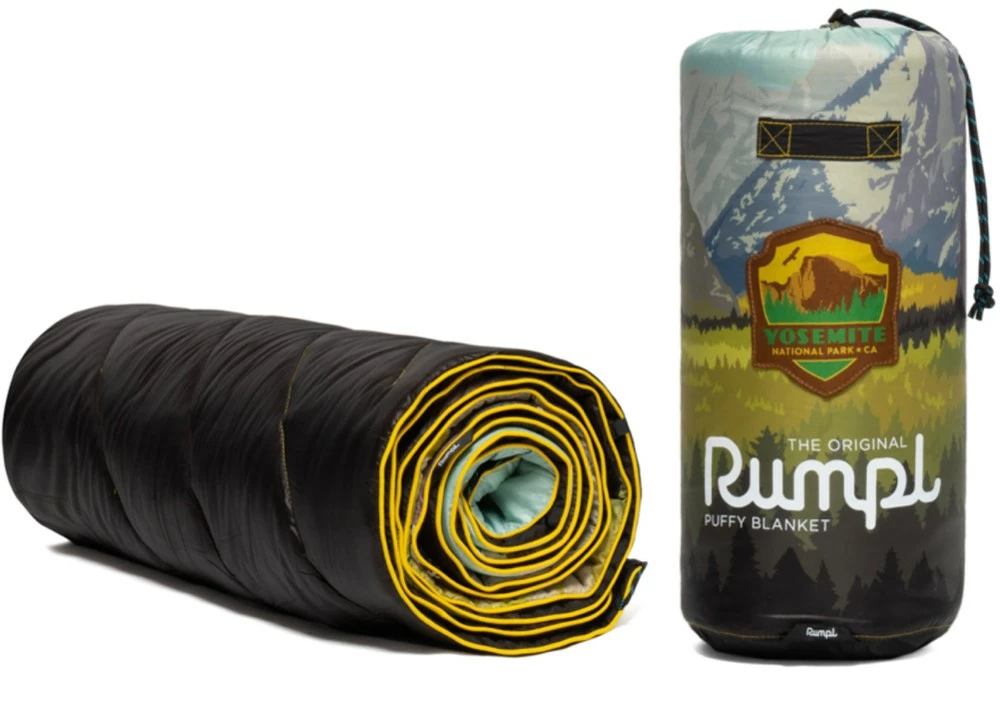 Whether you’re gazing up at dramatic rock faces from a campsite below or relaxing back at home, the Yosemite Rumpl Original Puffy blanket throws on the warmth with 100% recycled materials.