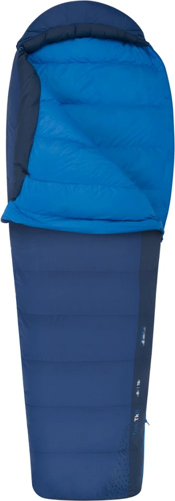 With a tapered rectangular shape that offers more room than a mummy bag, the Sea to Summit Trek TkII sleeping bag keeps you warm via water-resistant, RDS-certified 650-fill-power down.